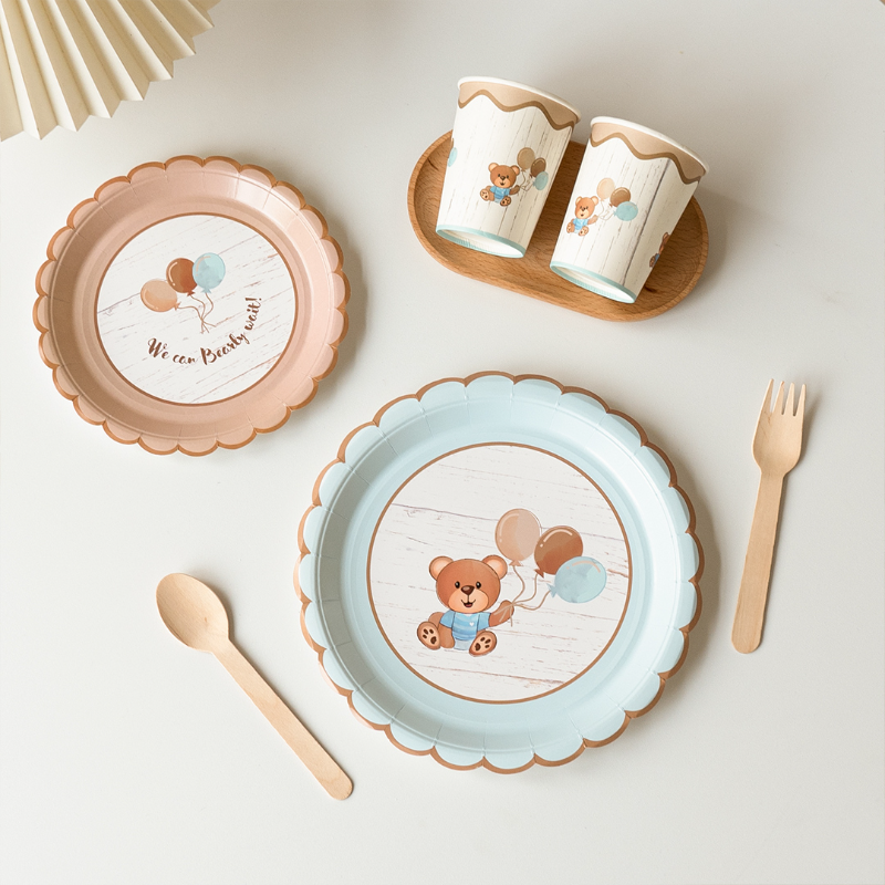 一次性小熊纸盘儿童生日派对聚会装饰碟子杯子用品
