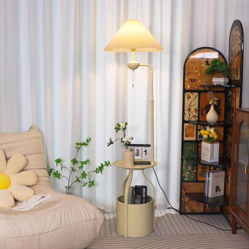 北欧轻奢奶油风落地灯客厅沙发置物摆件卧室床头柜一体立式灯拉线