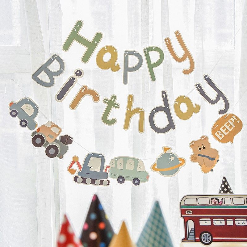 儿童生日拉旗装饰横幅装扮周岁背景墙布置卡通彩旗拉花挂饰用品
