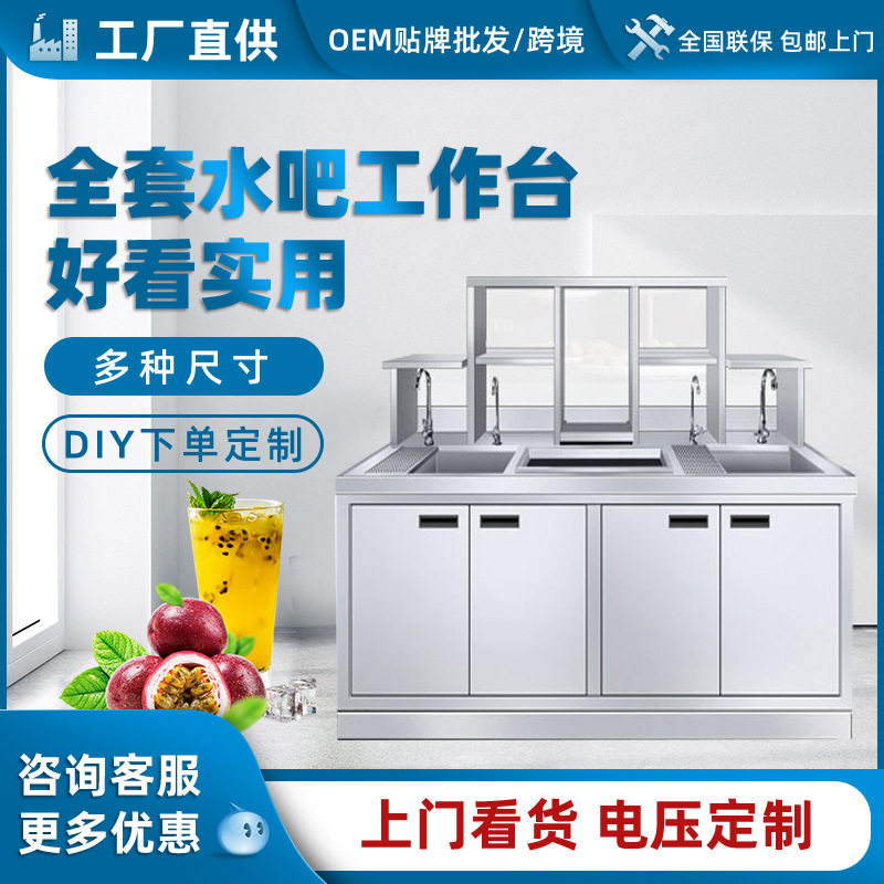 奶茶操作台不锈钢贡茶水吧台商用 奶茶店设备全套水吧工作台