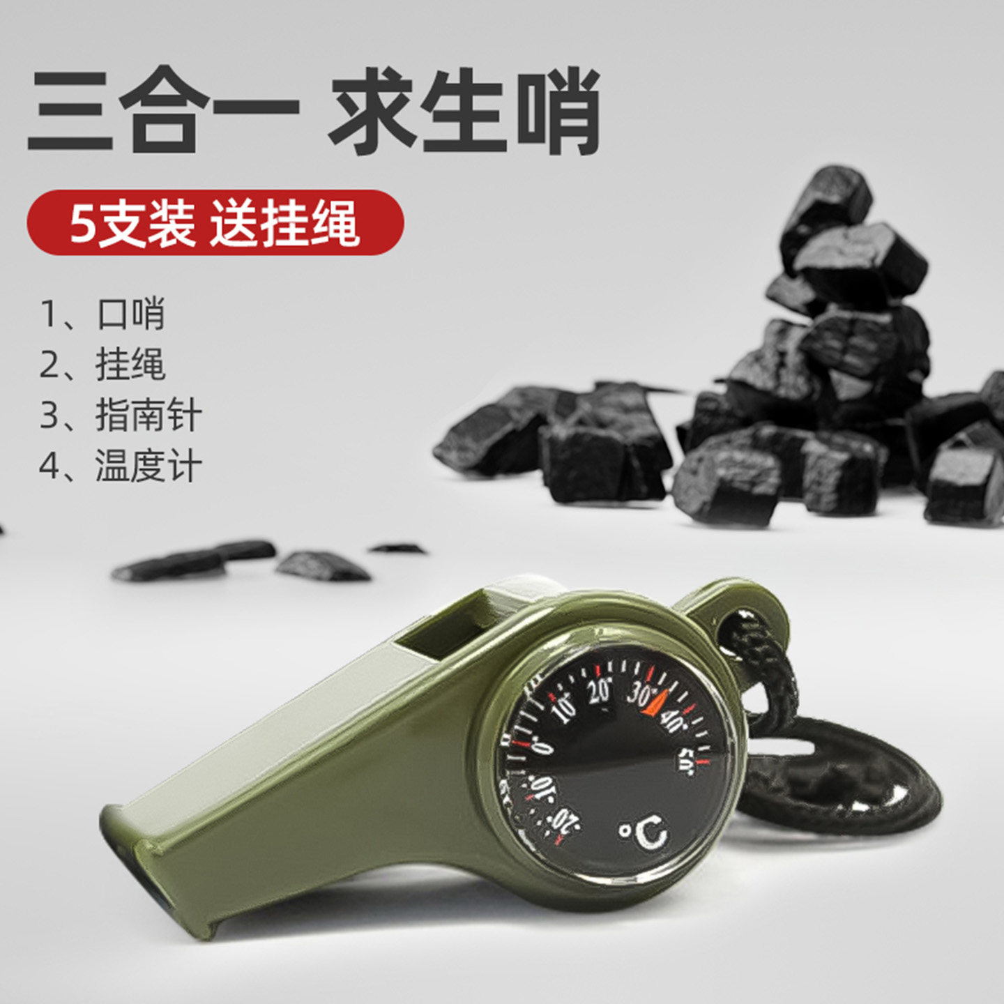 高频口哨三合一多功能爆音求生哨救生哨子无核户外露营应急指南针