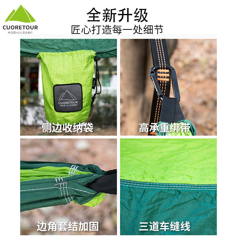 推荐理由:户外单人双人降落伞布吊床210T尼龙防侧翻露营野外秋千掉床神器