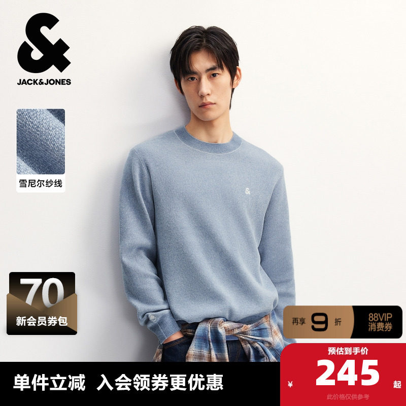 杰克琼斯奥特莱斯男装秋季毛衣针织衫亲肤面料刺绣潮流长袖上衣