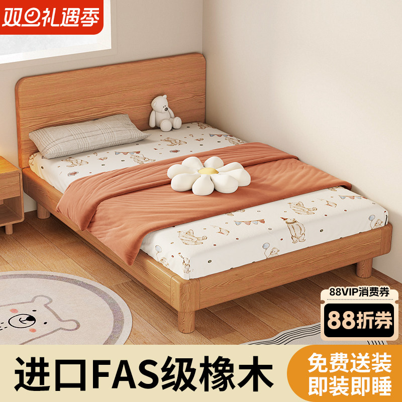 橡木实木儿童床蒙氏地台床青少年带床头单人床男孩女孩家用小床