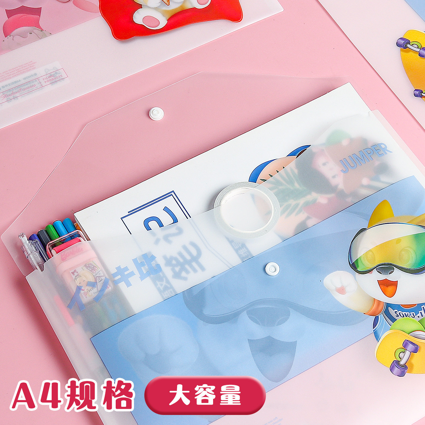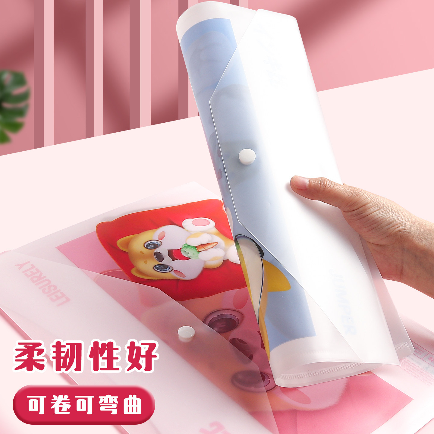 A4按扣文件袋加厚大容量塑料文件夹小学生专用试卷整理收纳袋透明科目分类资料档案袋防水防污初中生考试文具