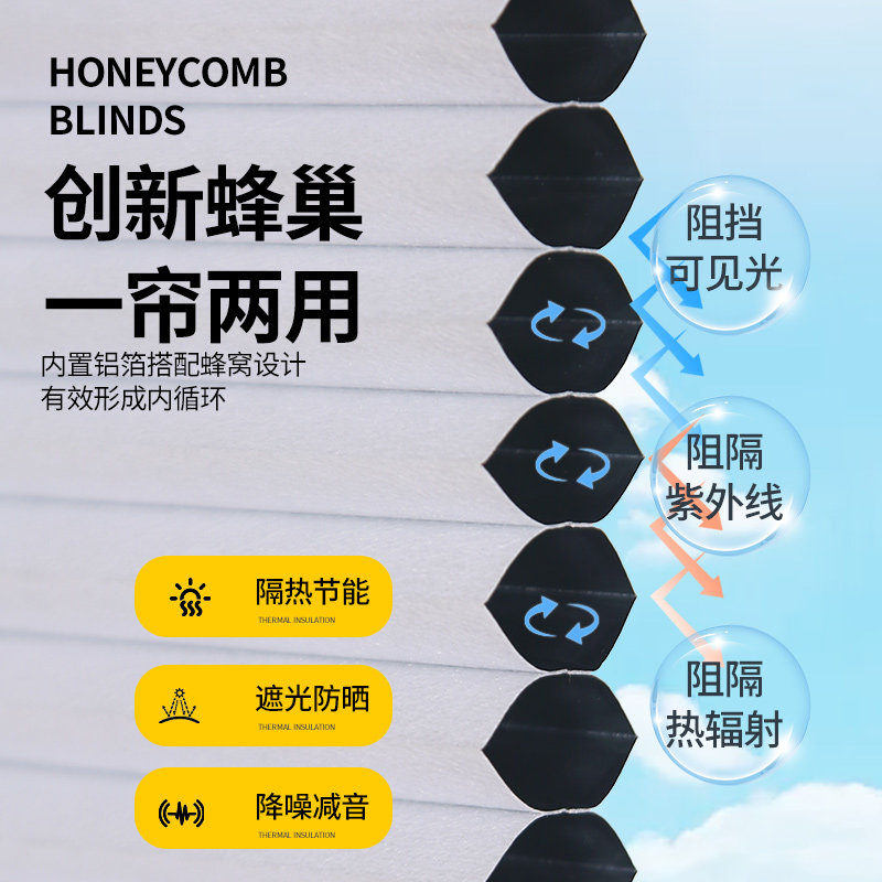 带框推拉式免打孔内嵌蜂巢帘隐形风琴窗帘卧室卫生间遮光隔热卷帘
