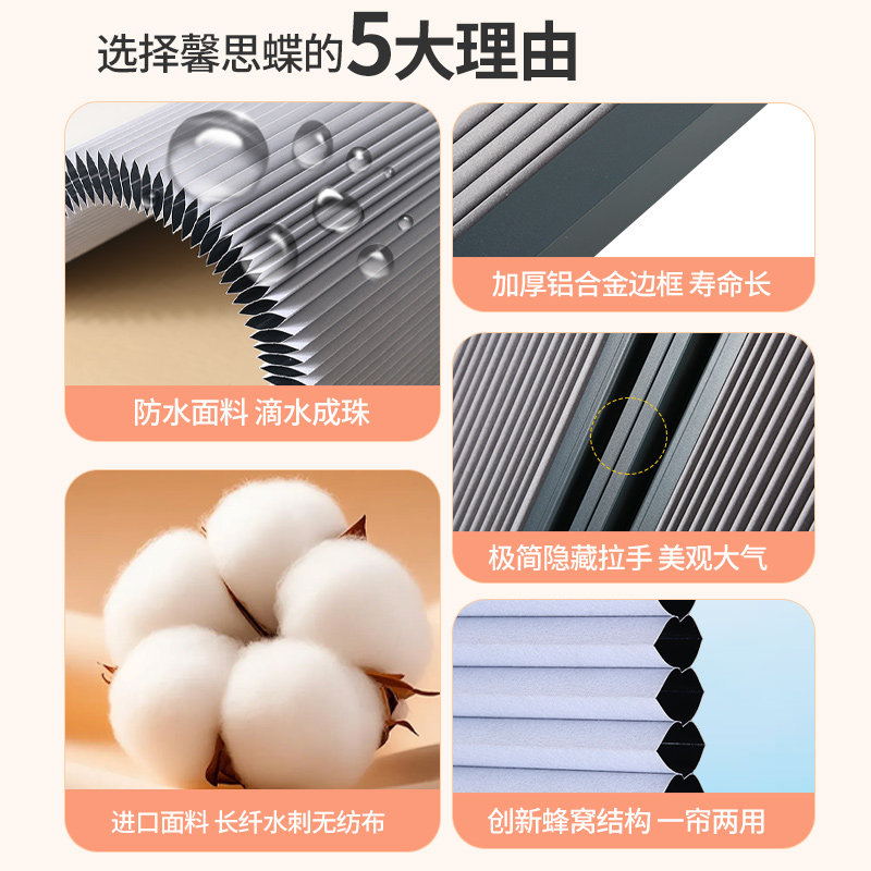推荐理由:带边框推拉式免打孔内嵌蜂巢帘