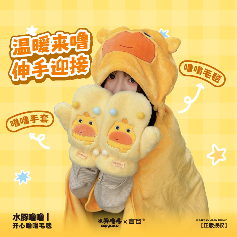 言仓水豚噜噜联名毛绒手套冬日加厚可爱保暖防风情侣圣诞生日礼物