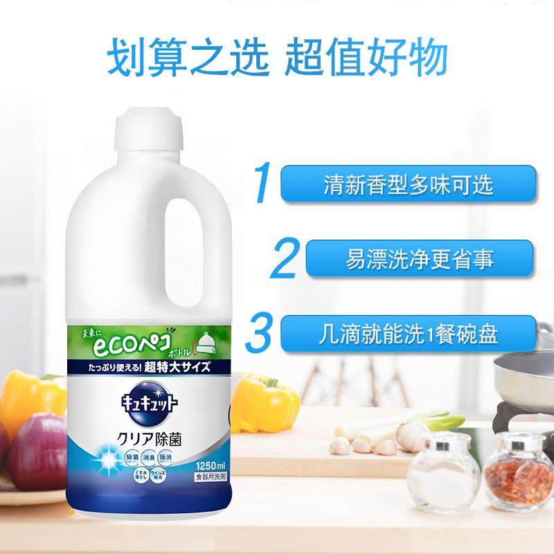 推荐理由:日本进口花王洗洁精厨房餐具用浓缩去油除菌清洁特大瓶桶装1250ml