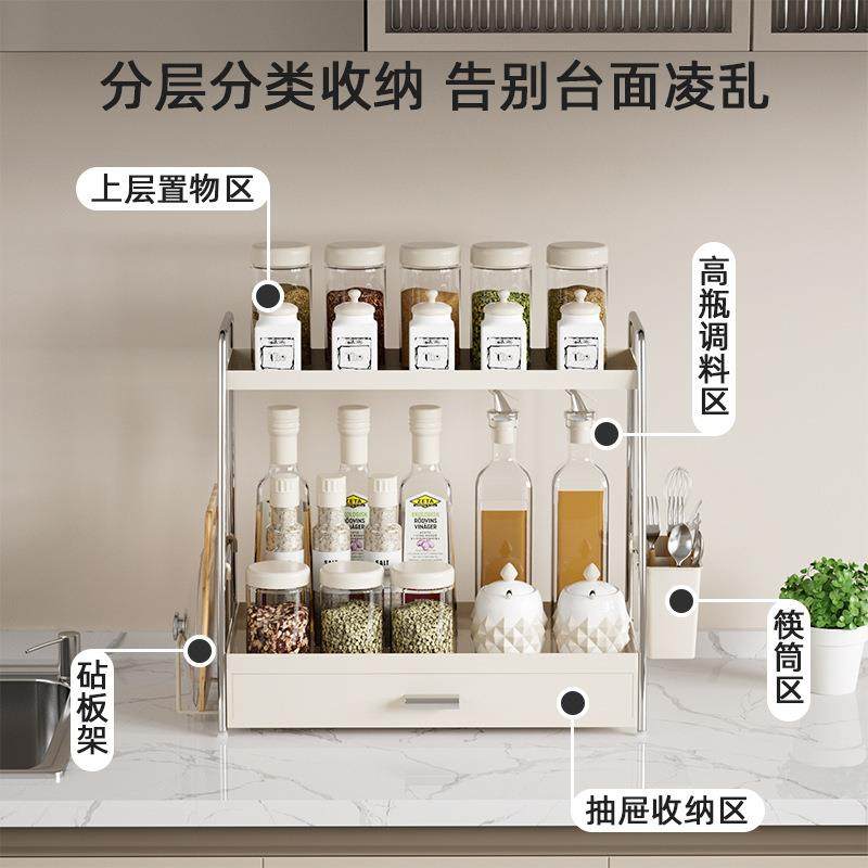 双奶油风调白色不锈厨房调料收纳架台面层多功能MWK砧板架料置钢