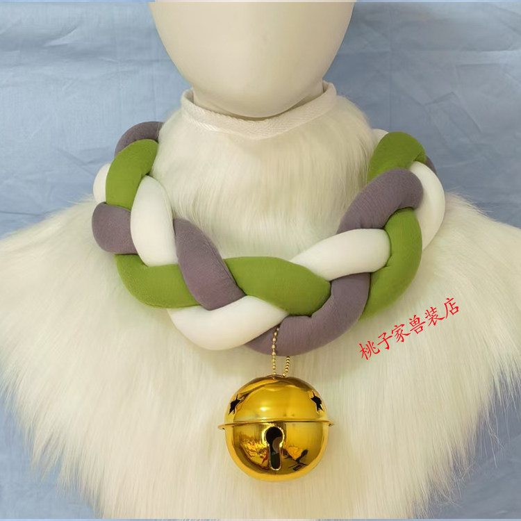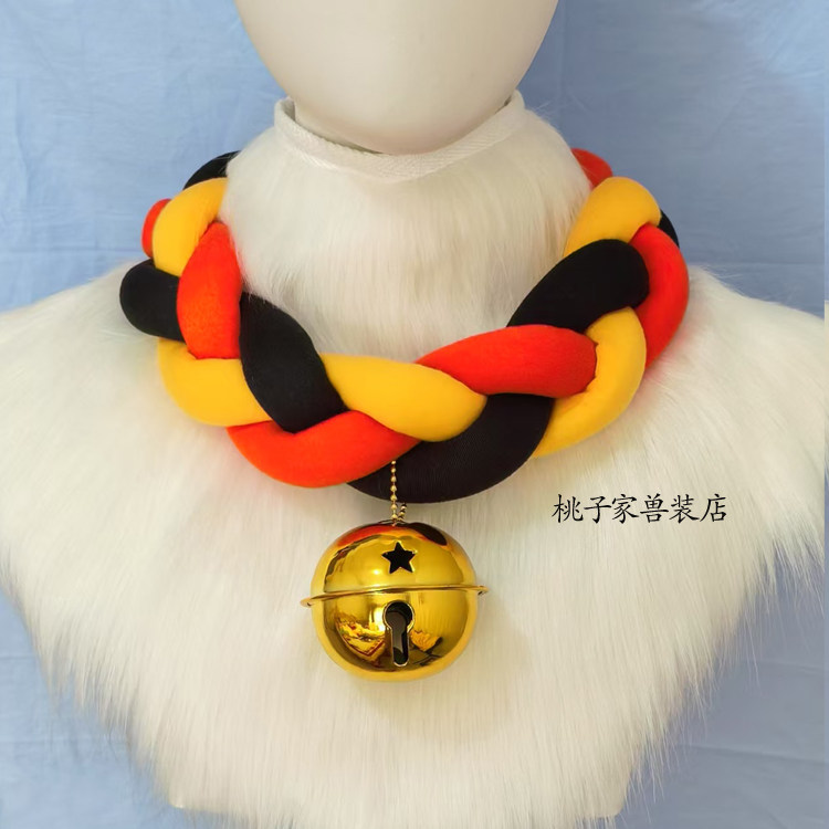 兽装项圈加粗麻花辫兽装绳编项圈furry福瑞配饰6.5cm绳结大铃铛