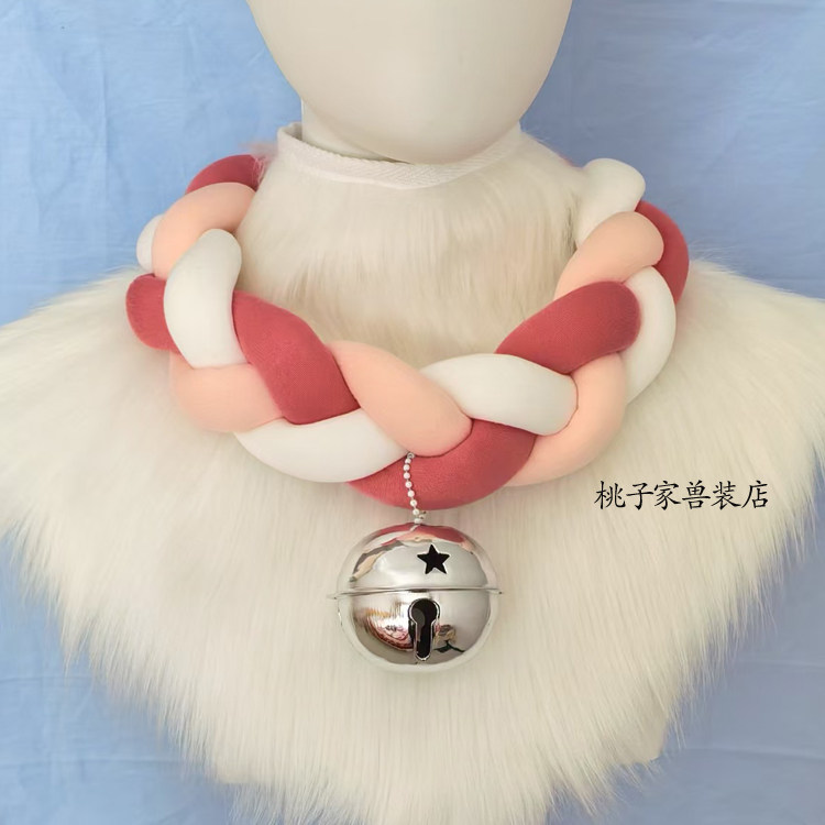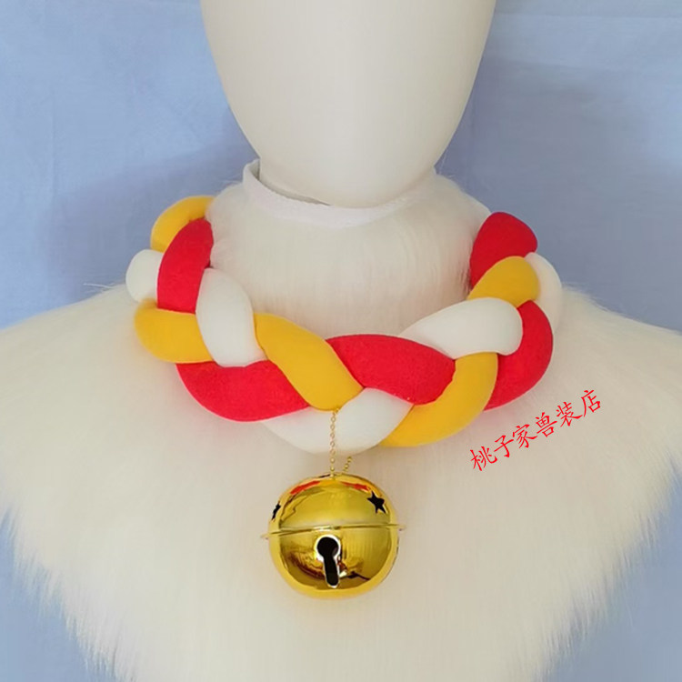 推荐理由:兽装项圈加粗麻花辫兽装绳编项圈furry福瑞配饰6.5cm绳结大铃铛
