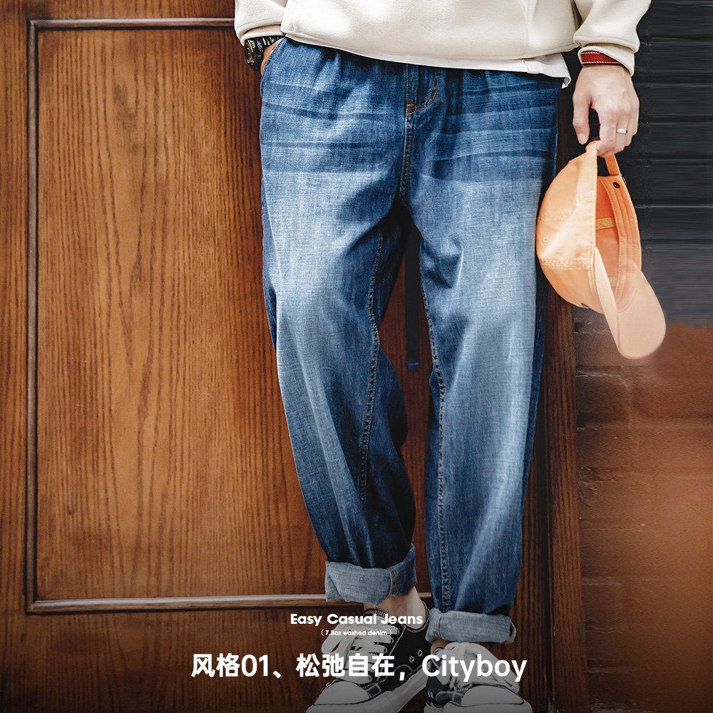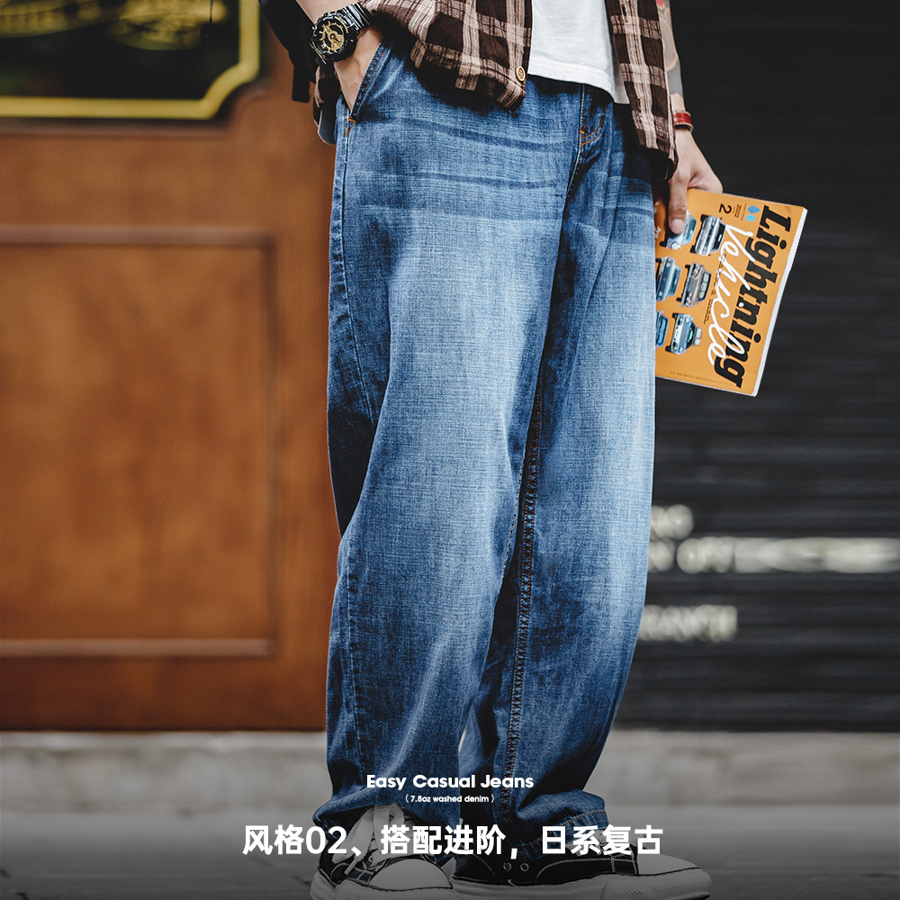 推荐理由:马登工装 美式休闲磨白丹宁牛仔裤水洗猫须宽松阔腿直筒长裤男秋