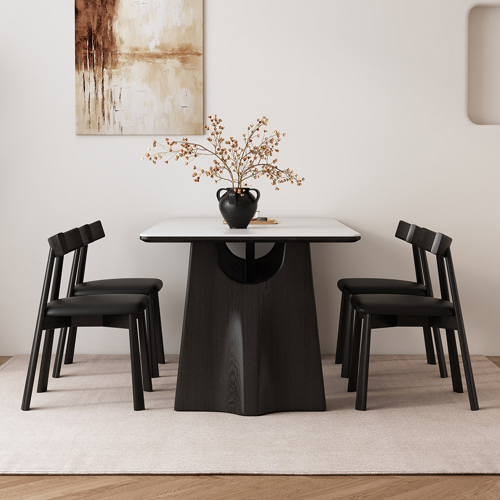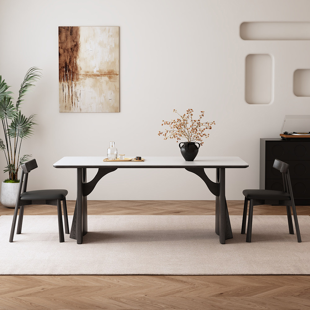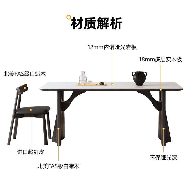 推荐理由:意式极简实木岩板餐桌小户型家用长方形现代简约法式侘寂风餐桌椅