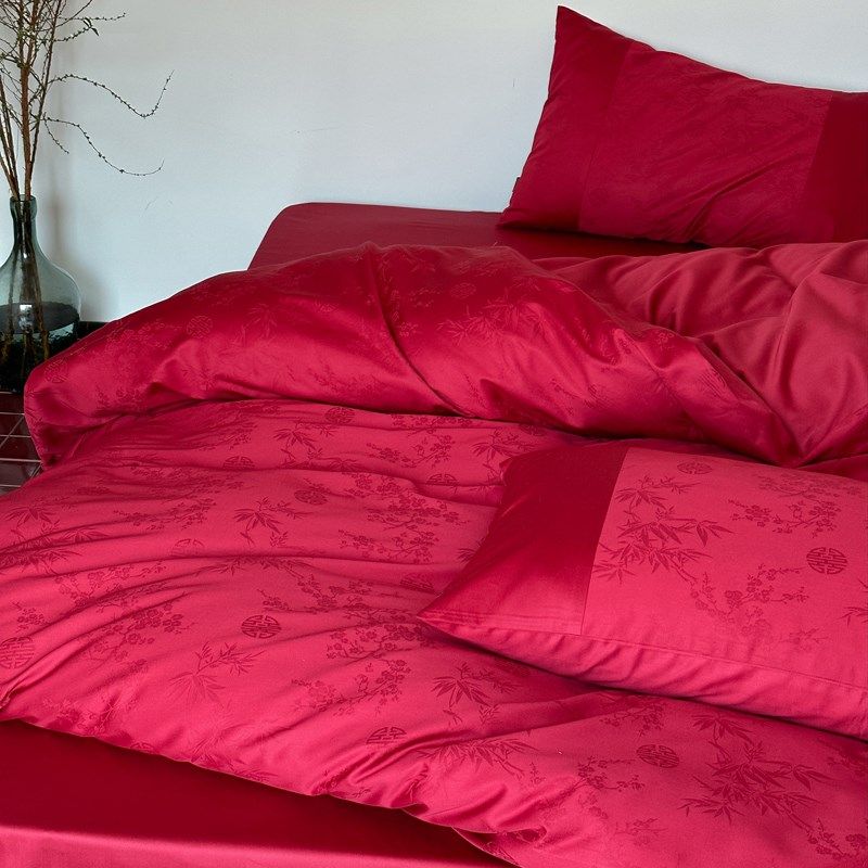 新中式婚庆120S长绒棉四六件套结婚全棉提花红色被套床单纯棉床品