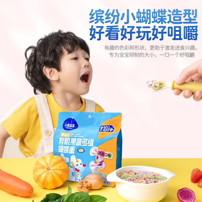 【叠88vip+淘礼.金更低。赠短面1盒】,包邮小鹿蓝蓝有机蝴蝶面宝宝婴儿辅食儿童不添加盐面条200gX1盒