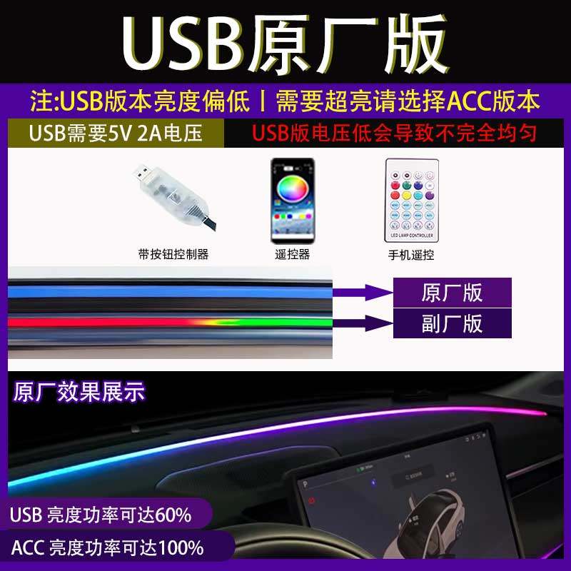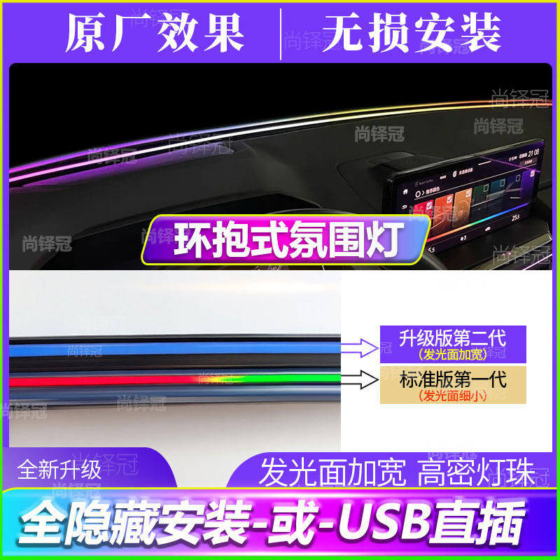 中控环抱式前挡贯穿USB氛围灯车载汽车内饰玻璃LED仪表台改装免接
