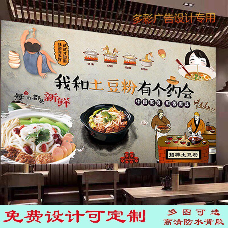 土豆粉墙纸壁画小吃店墙面广告海报自粘墙贴饭店手工土豆粉装修画
