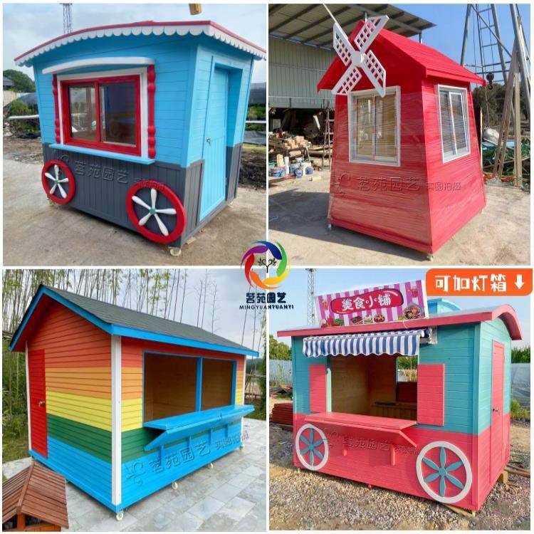 户外防腐木制风景区彩色卡通移动售货售票贩卖亭小吃车岗亭木屋定