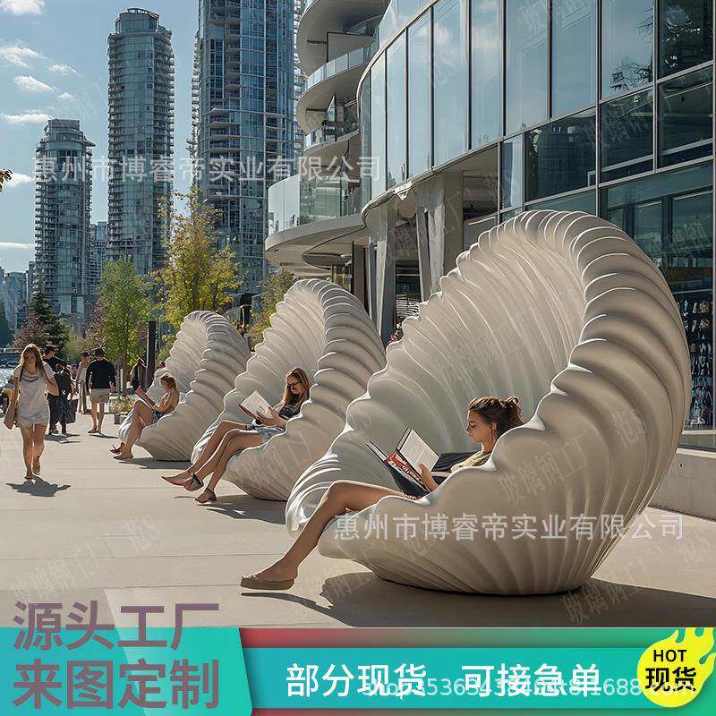 意式简约时尚贝壳椅玻璃钢螺纹椅洽谈休闲椅别墅售楼处阳台异形椅