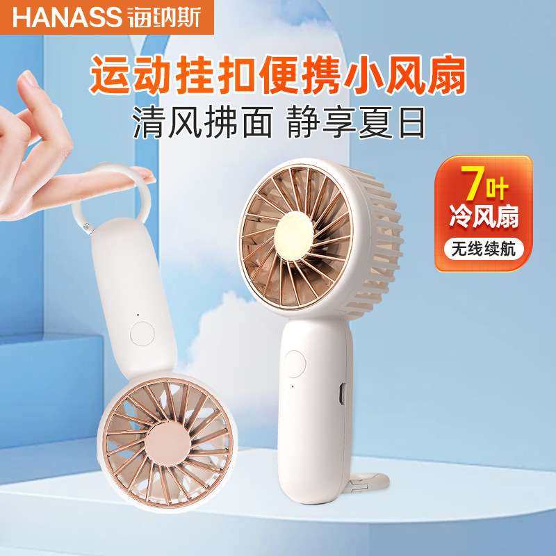 海纳斯H2Pro充电手持小风扇无线便携轻音台扇户外登山扣口袋迷你