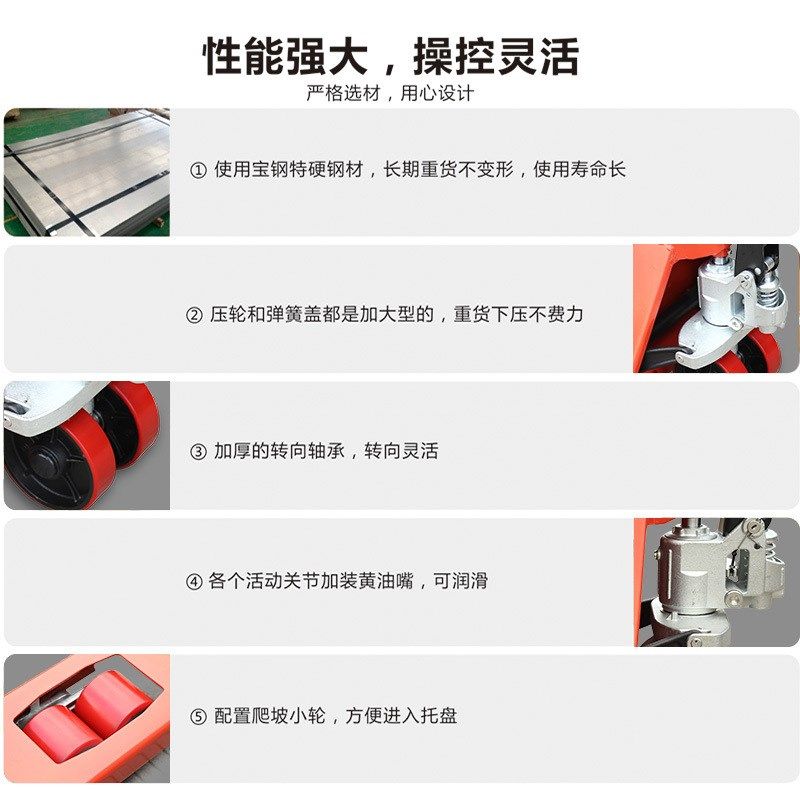 推荐理由:好拉5吨8吨10吨手动叉车重型油压手拉车液压叉车5000kg搬运托盘车