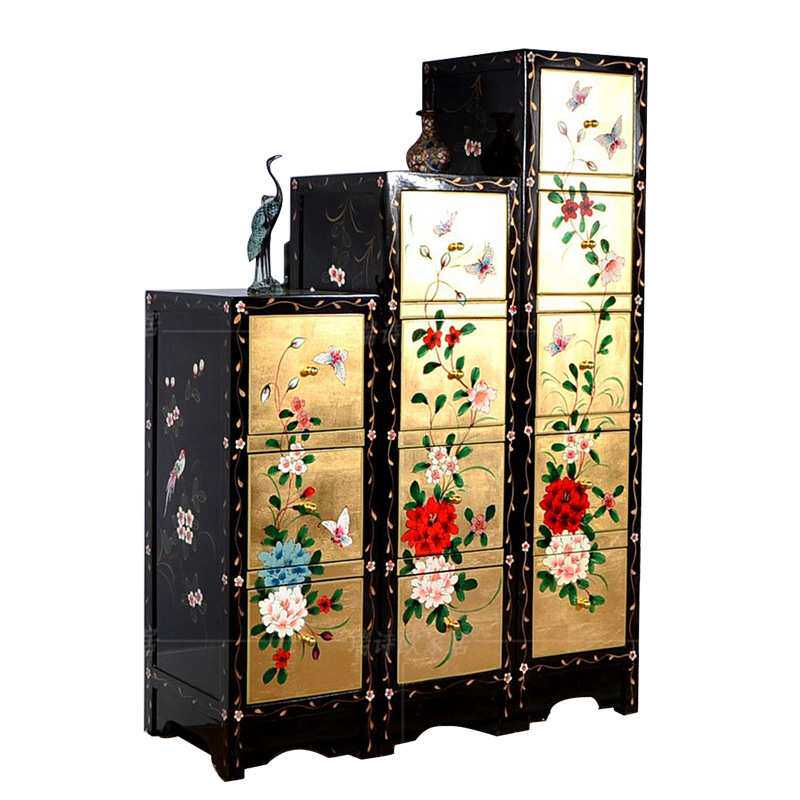 新中式金箔多斗柜装饰柜彩绘抽屉边柜收纳储物柜三斗立柜四斗五斗