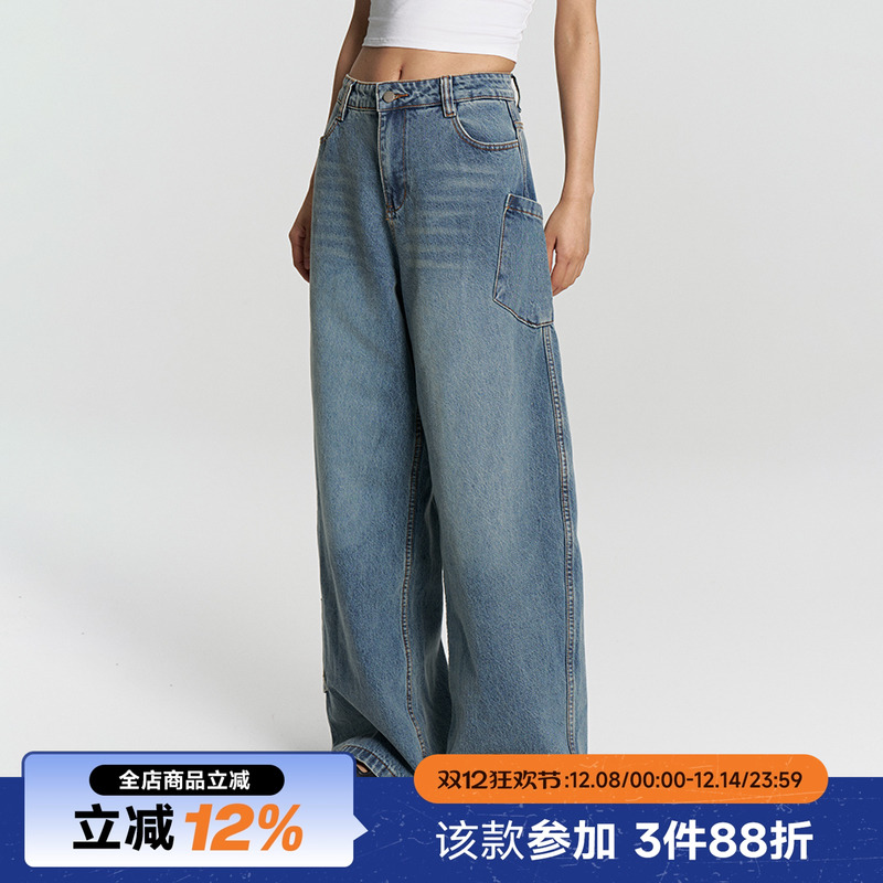 RAPPEYE 国潮设计感复古美式高街宽松显瘦直筒侧袋弯刀阔腿牛仔裤