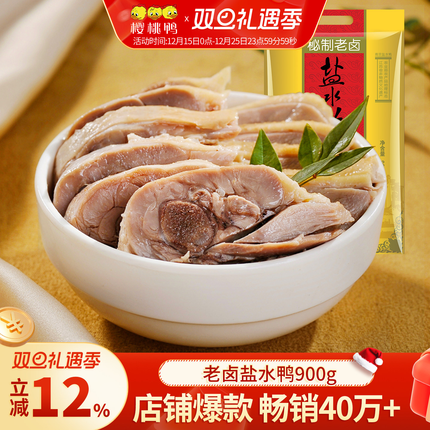 樱桃鸭南京特产盐水鸭900g整只鸭美食咸水鸭板鸭真空熟食包邮