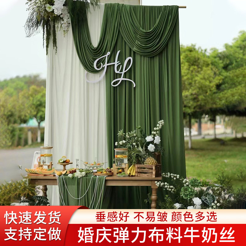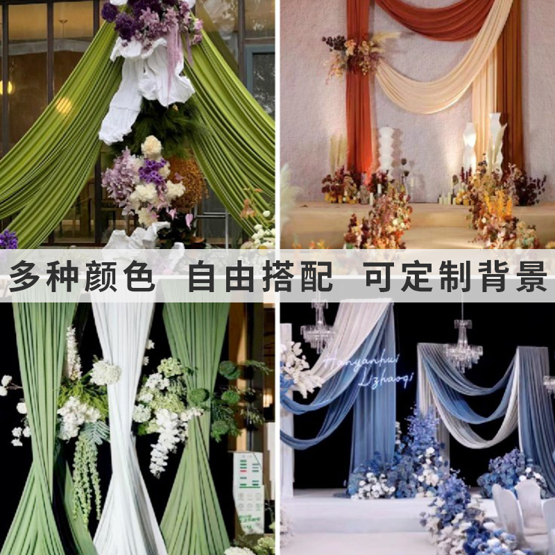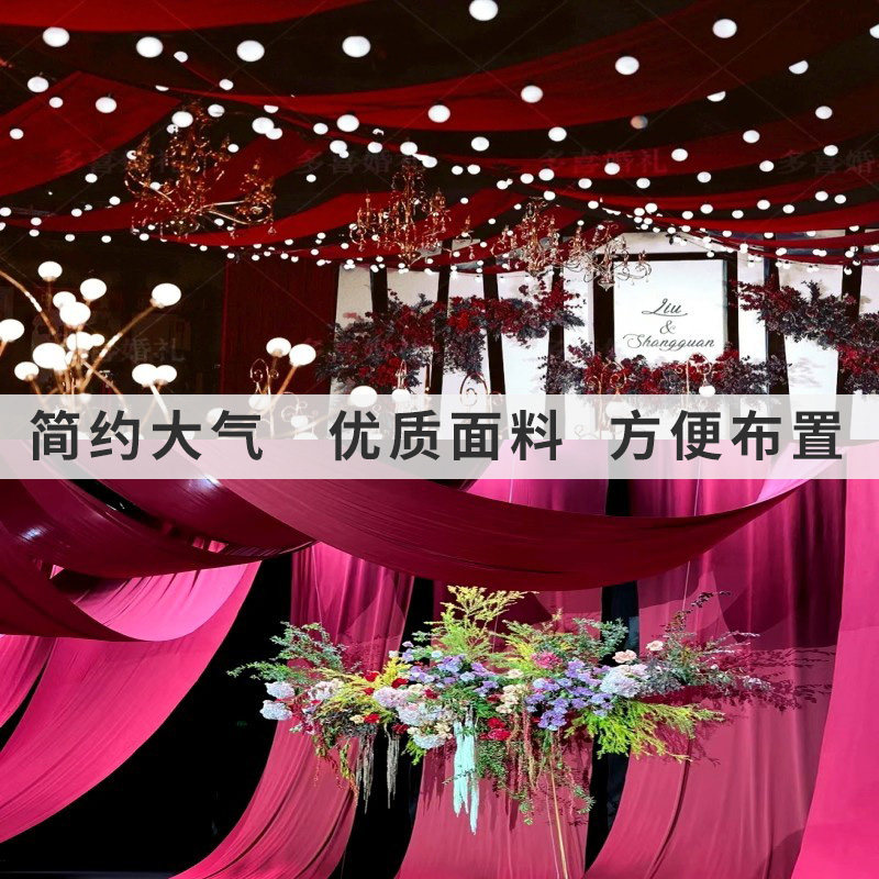 婚庆装饰牛奶丝背景纱幔弹力布幔婚礼现场布置酒店结婚吊顶帷幔