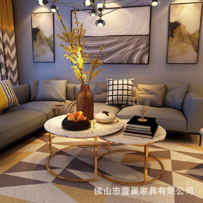 奢现红代不锈钢YC-A8060镀子金大小圆茶几大理石客厅桌简易网茶几