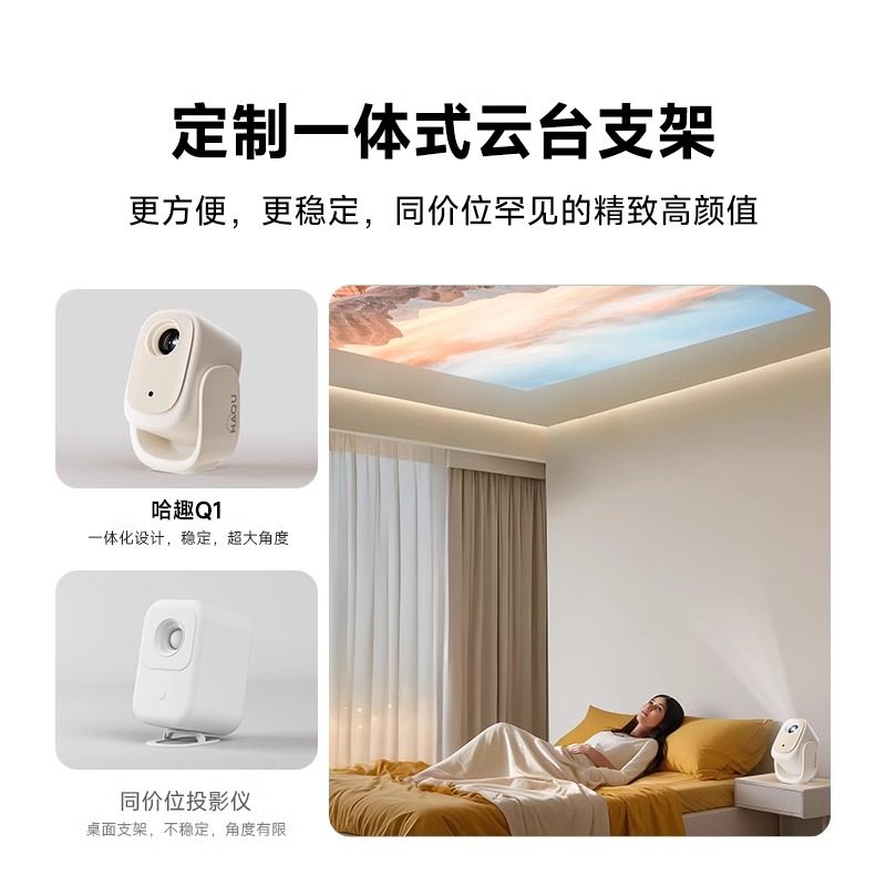 哈趣Q1投影仪云台一体 小型宿舍学生家用高清智能护眼卧室可投天花板便携投影机