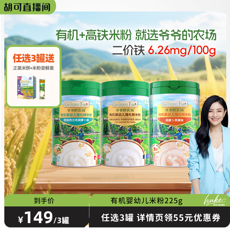【胡可直播】爷爷的农场有机婴儿高铁米粉婴幼儿大米粉宝宝糊6月+