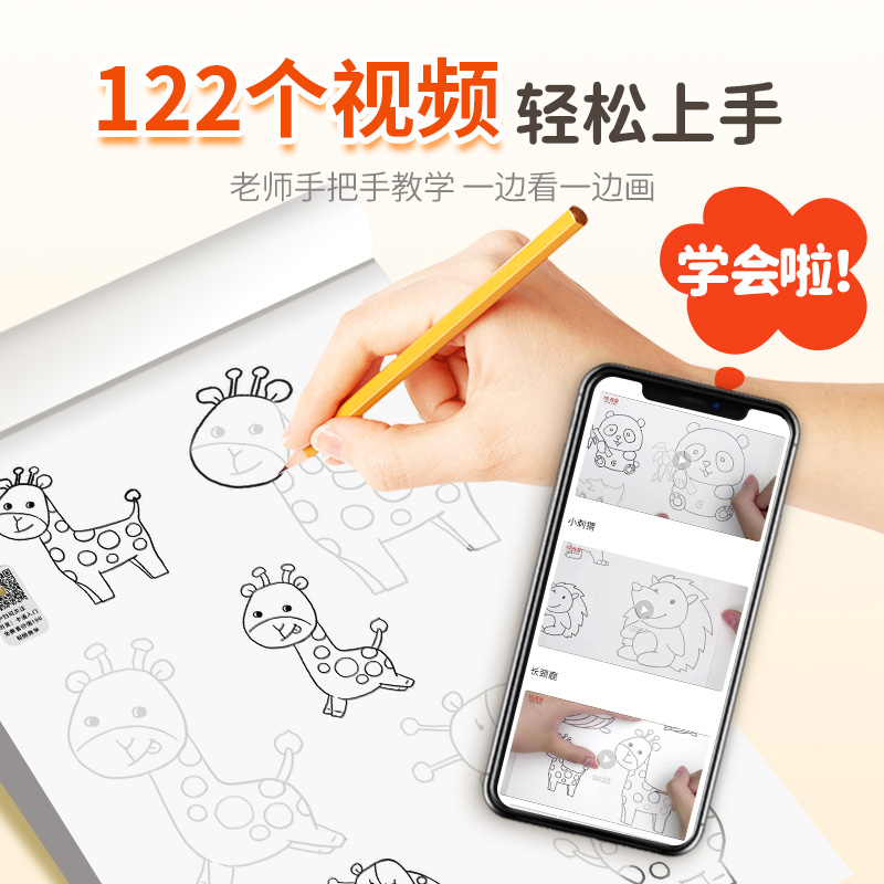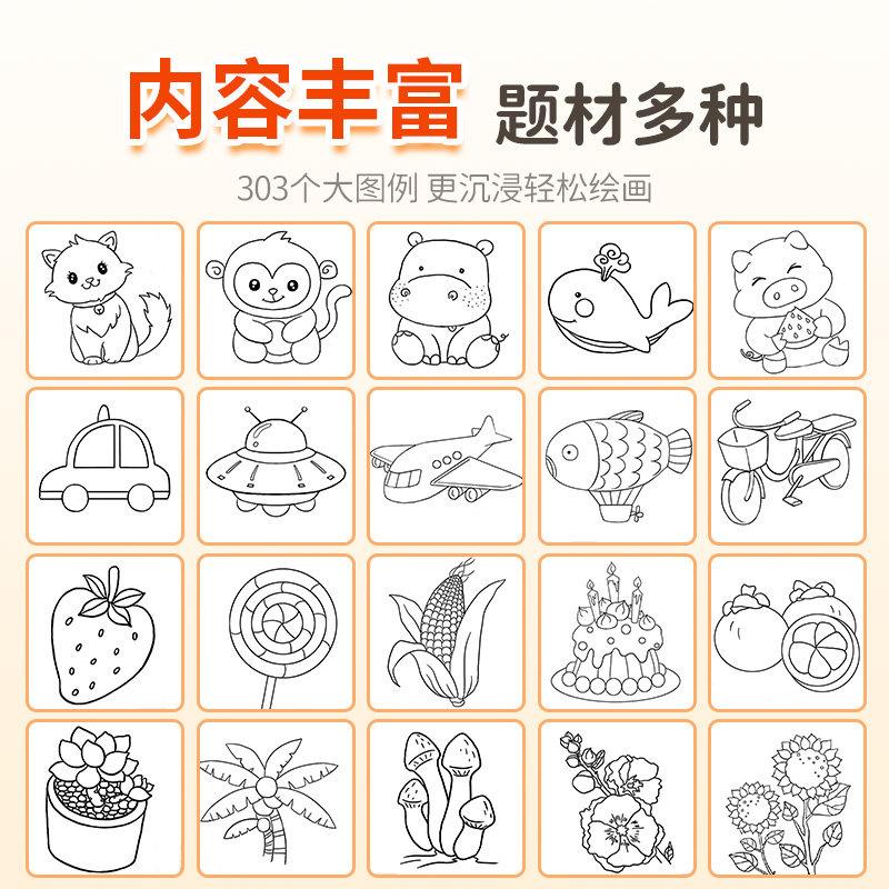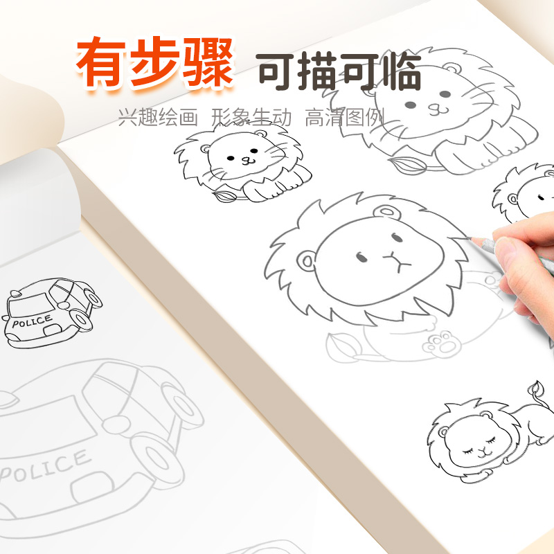 卡通动物描摹本描绘画画儿童描画本图画临摹简笔画漫画铅笔白描新手涂鸦涂色动漫训练绘画幼儿园入门画本画册