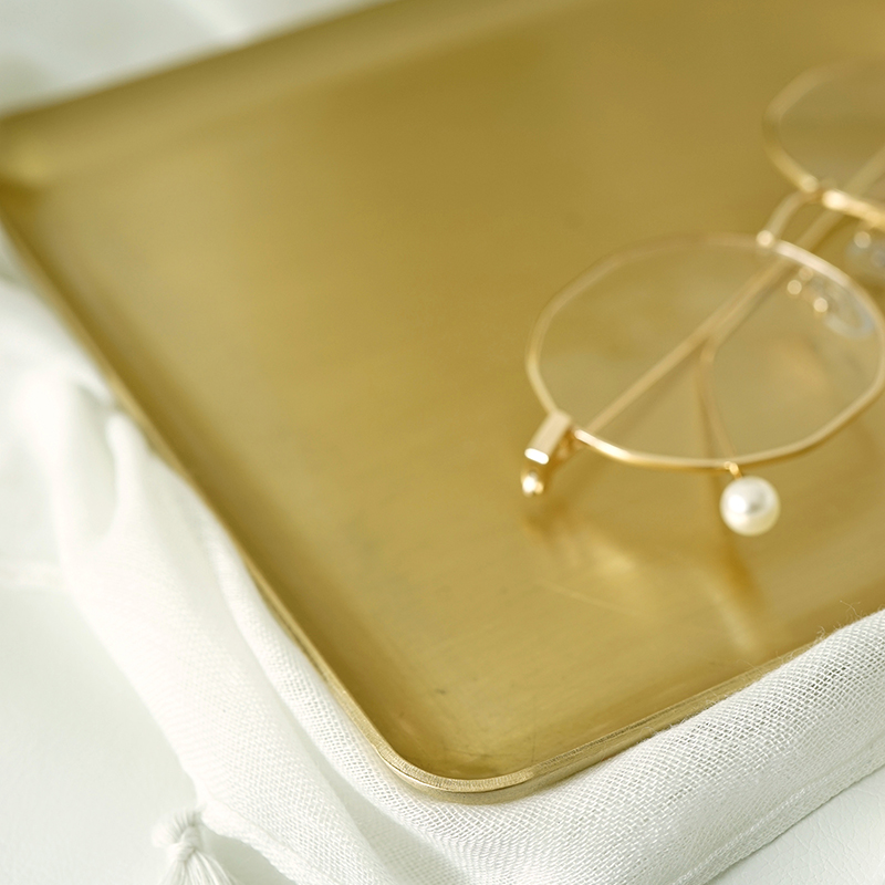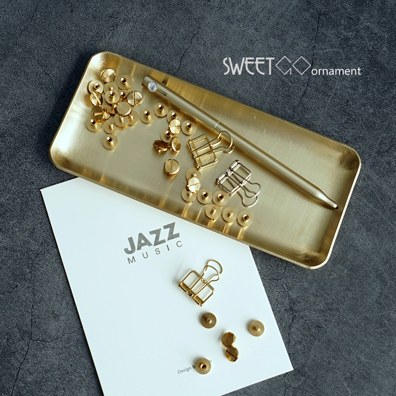 北欧黄铜托盘 金属首饰盘 ins风托盘拍照道具收纳盘 方形加厚铜盘