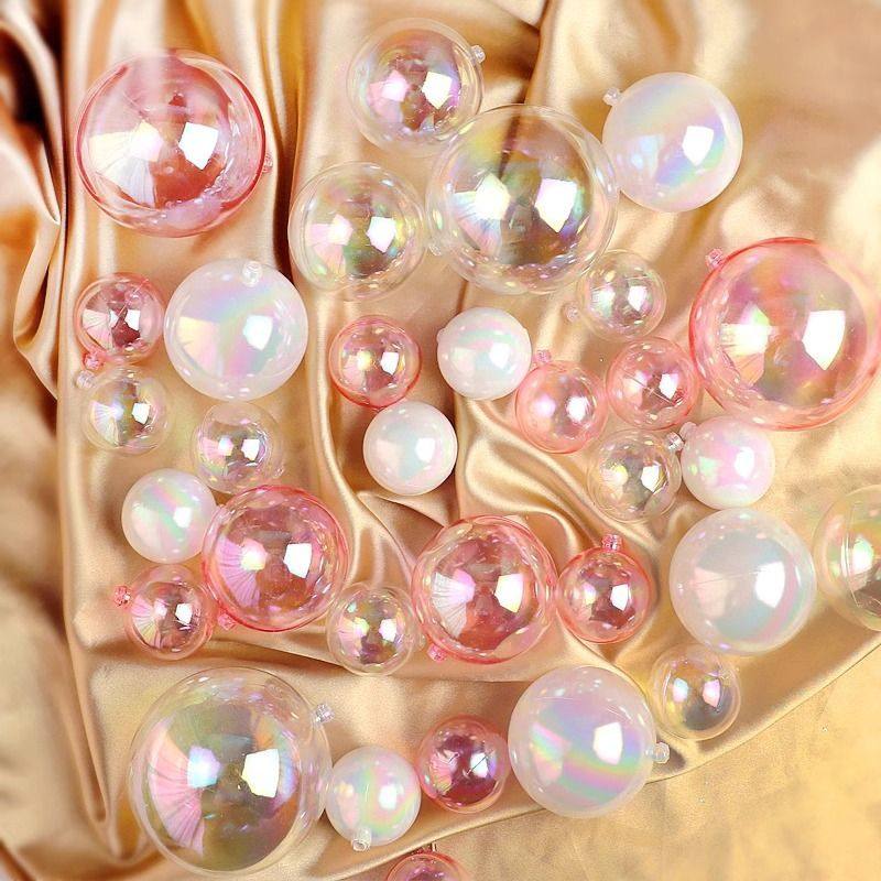 烘焙装饰ins唯美粉色炫彩透明球生日派对蛋糕装饰创意甜品台插件