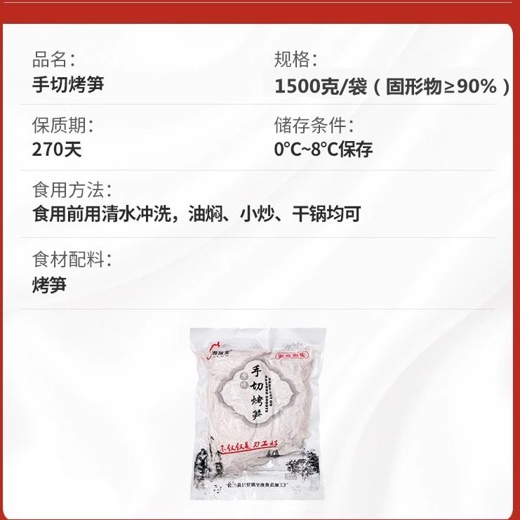 推荐理由:手切烤笋1.5kg袋装酒店饭店餐饮特色半成品小炒笋丝油焖烟笋制品