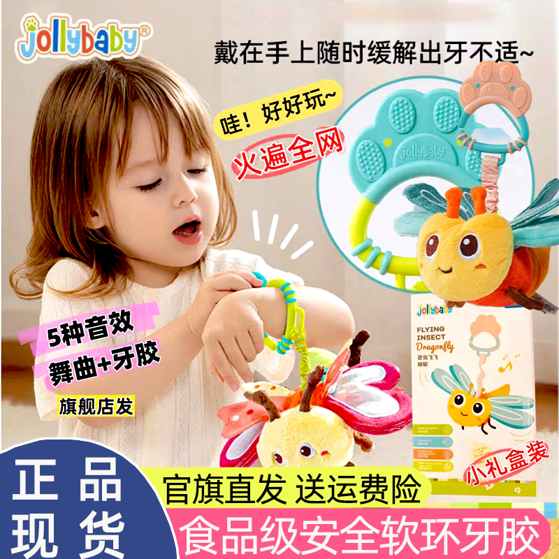 jollybaby动感昆虫飞飞毛绒玩偶婴儿可啃咬牙胶安抚玩偶玩具优惠