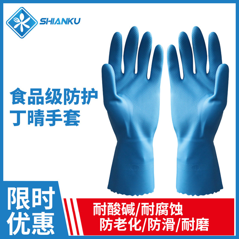 食安库橡胶混合丁腈手套食品级耐油乳胶防护手套耐磨耐酸碱防腐蚀