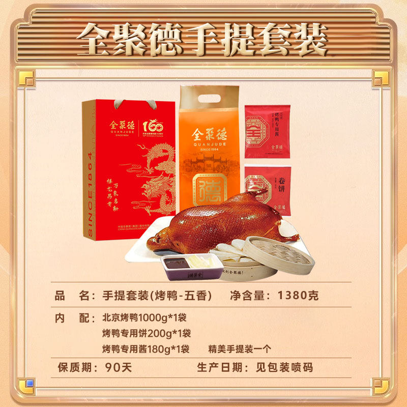 百亿-全聚德烤鸭礼盒正宗北京特产即食烧鸭酱鸭饼酱熟食整只官网