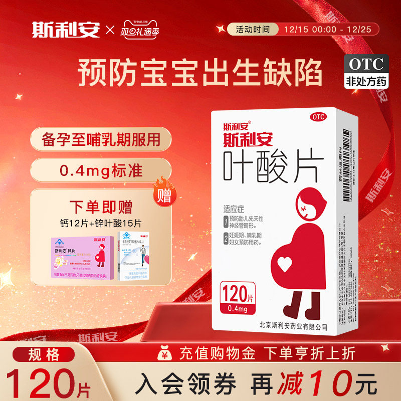 斯利安正品官方0.4mg叶酸片120片女士备孕期早期孕妇预防出生缺陷