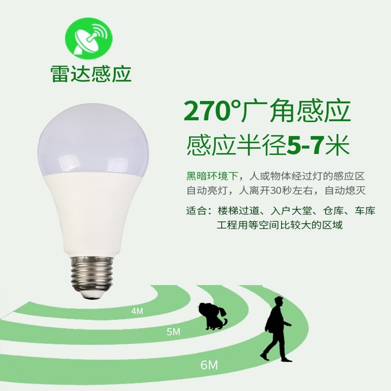 自动雷达人体感应灯泡红外线声光控车库楼梯过道物业家用室内智能