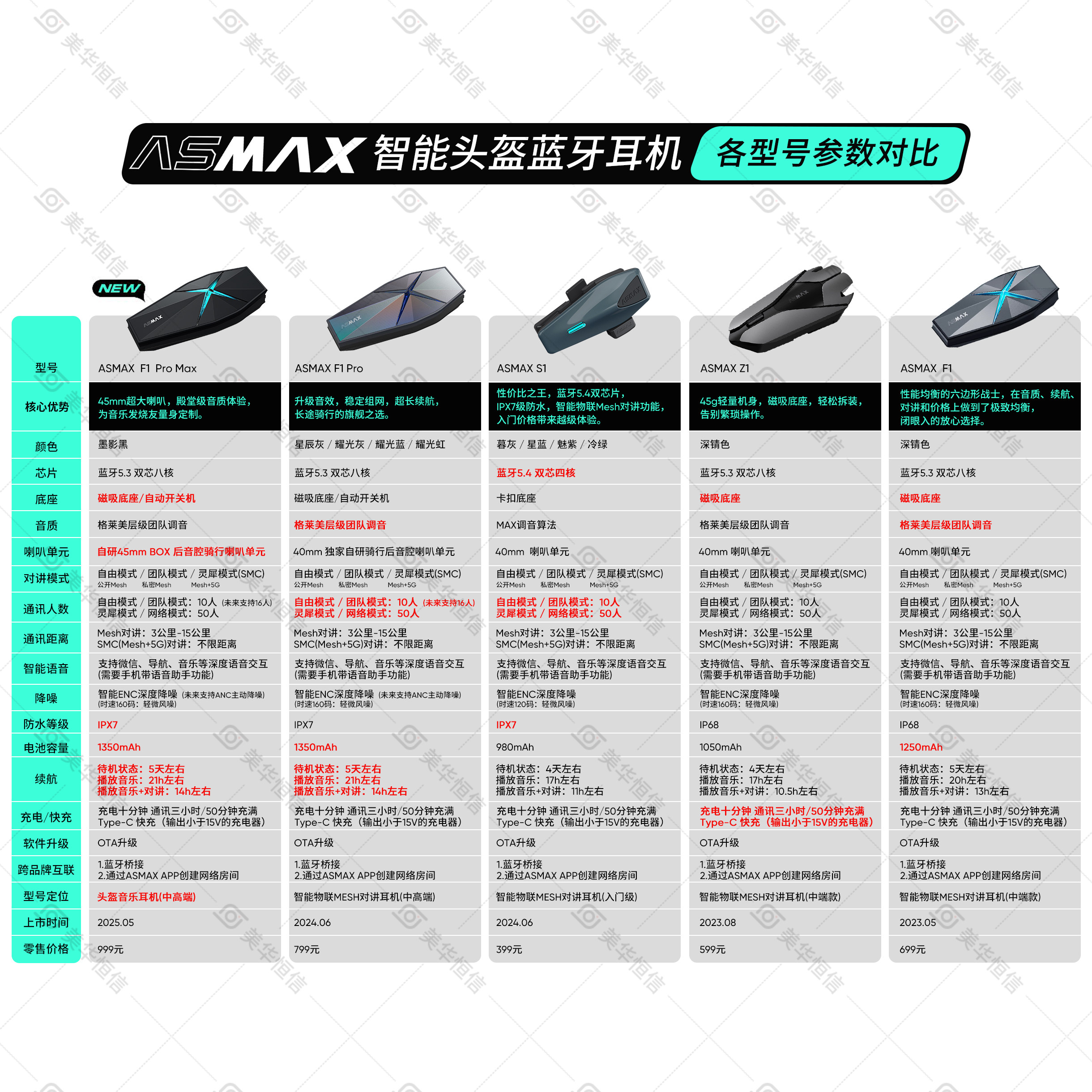 ASMAX S1头盔蓝牙耳机摩托车骑行多人对讲专用智能降噪防水音乐