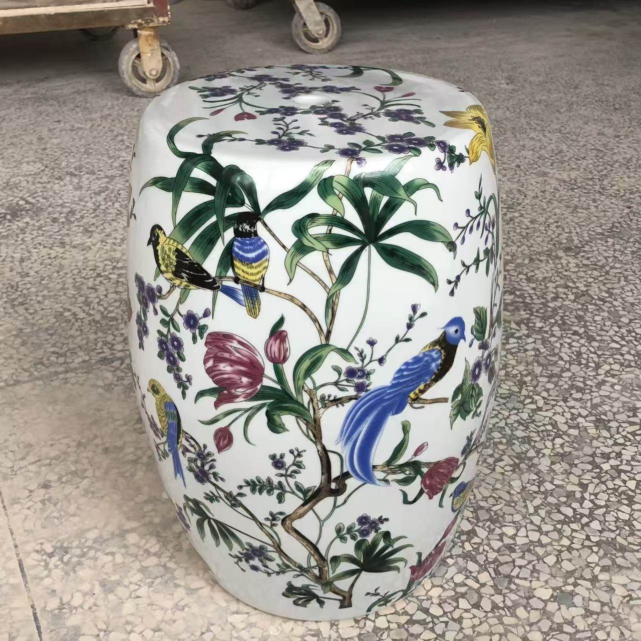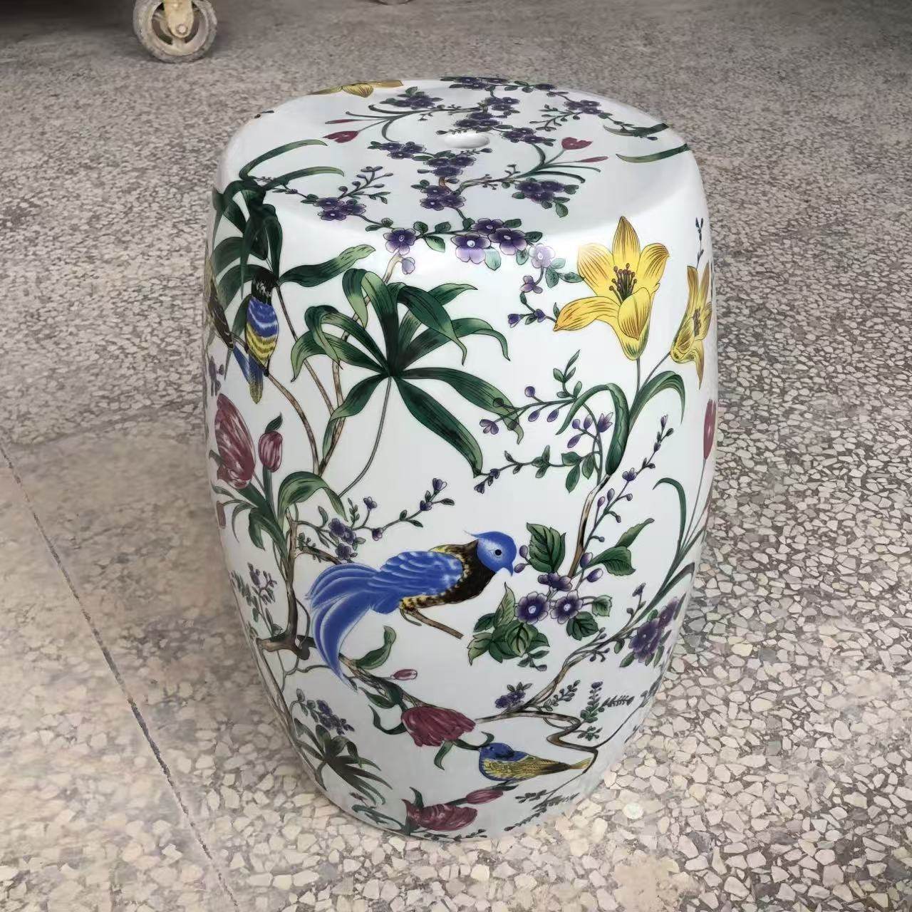 陶瓷鼓凳陶瓷坐墩欧式新中式客厅边几浴室凳换鞋凳陶瓷凳五彩花鸟