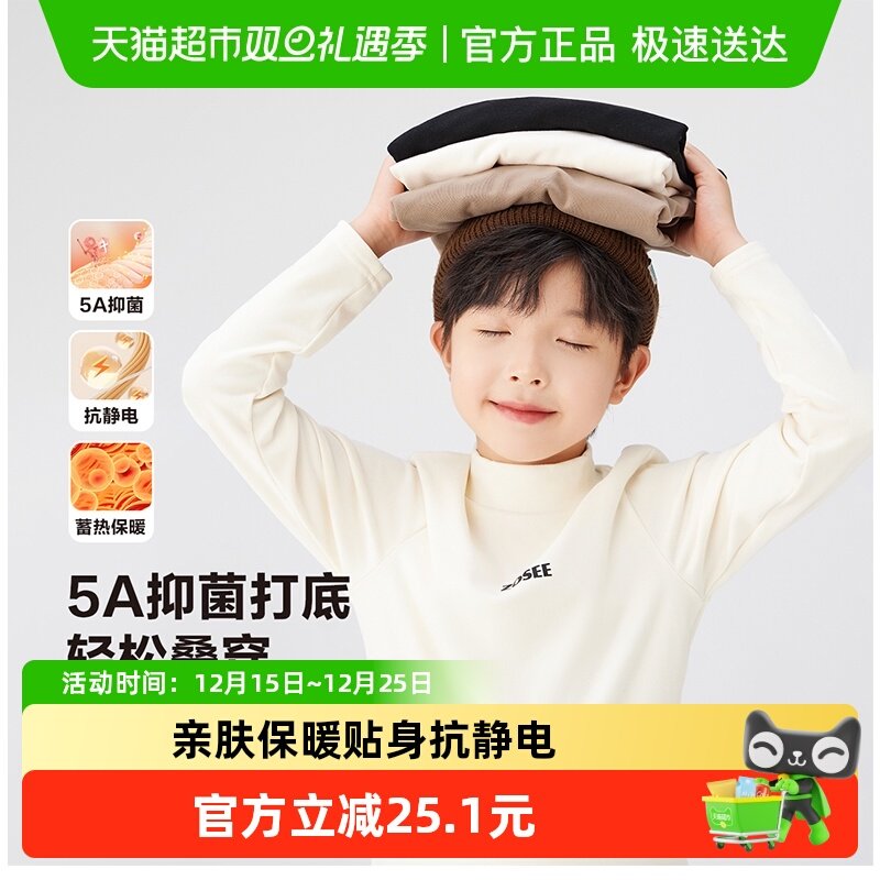 左西男童德绒打底衫半高领秋冬装2025新款男孩5A长袖T恤潮