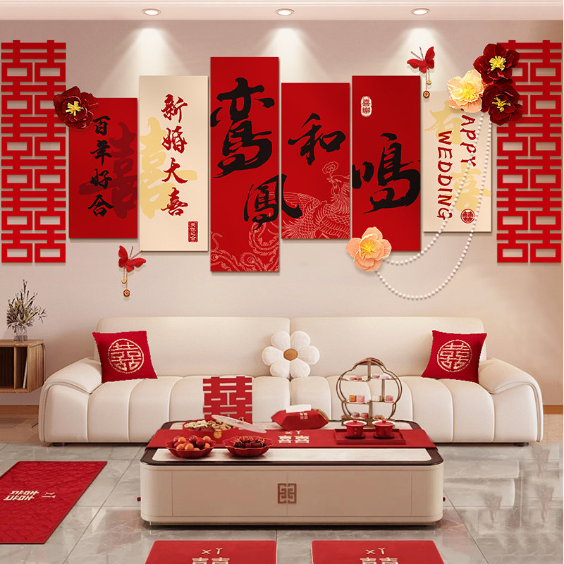 婚房布置沙发背景墙装饰结婚男方新房女方客厅全套简单拉花套装