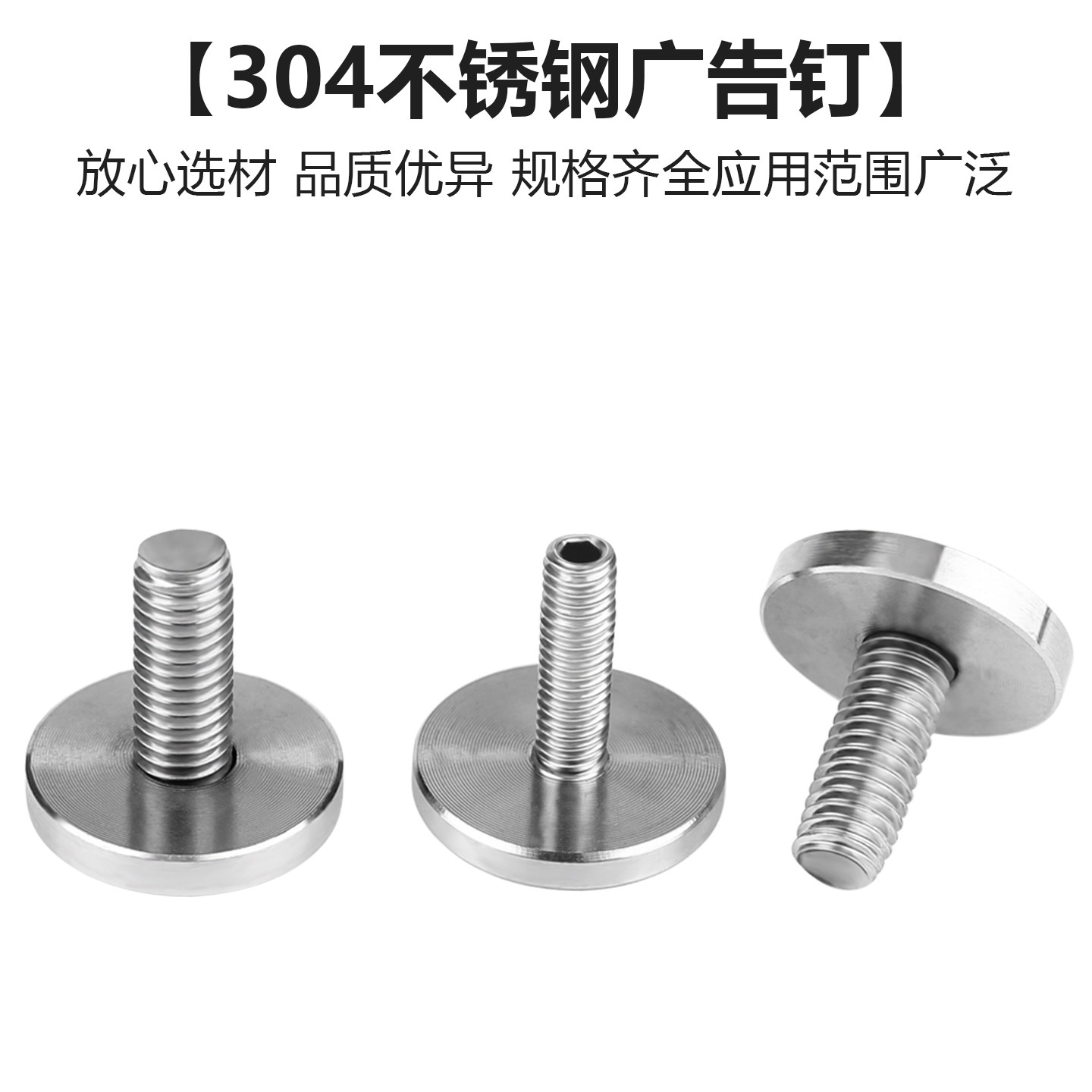 推荐理由:304不锈钢广告螺丝钉实心镜平面装饰玻璃招牌固定手拧螺钉M3-M10