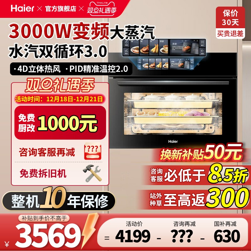 [麦浪]海尔蒸烤一体机嵌入式家用蒸烤箱全自动电蒸箱TCU1免费厨改