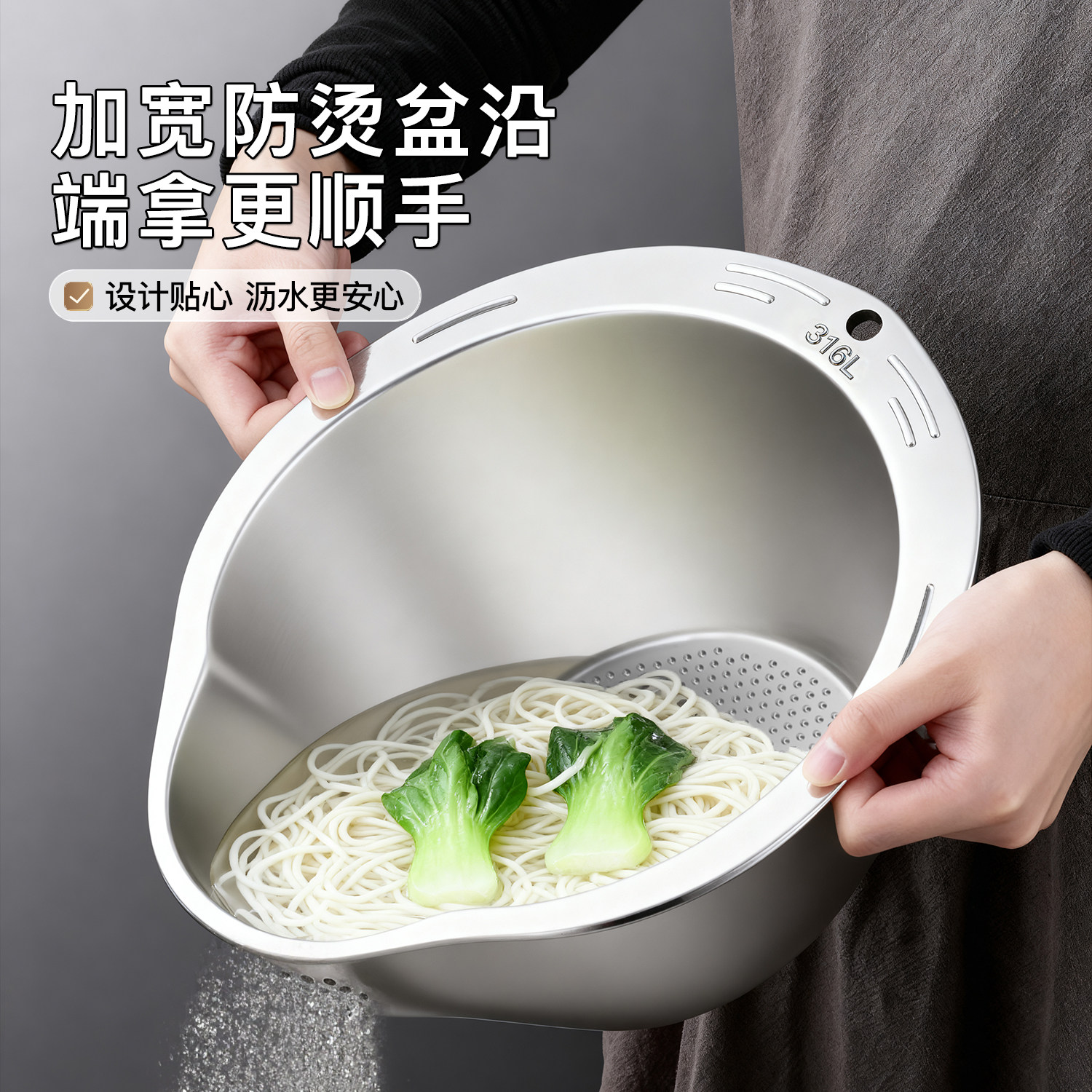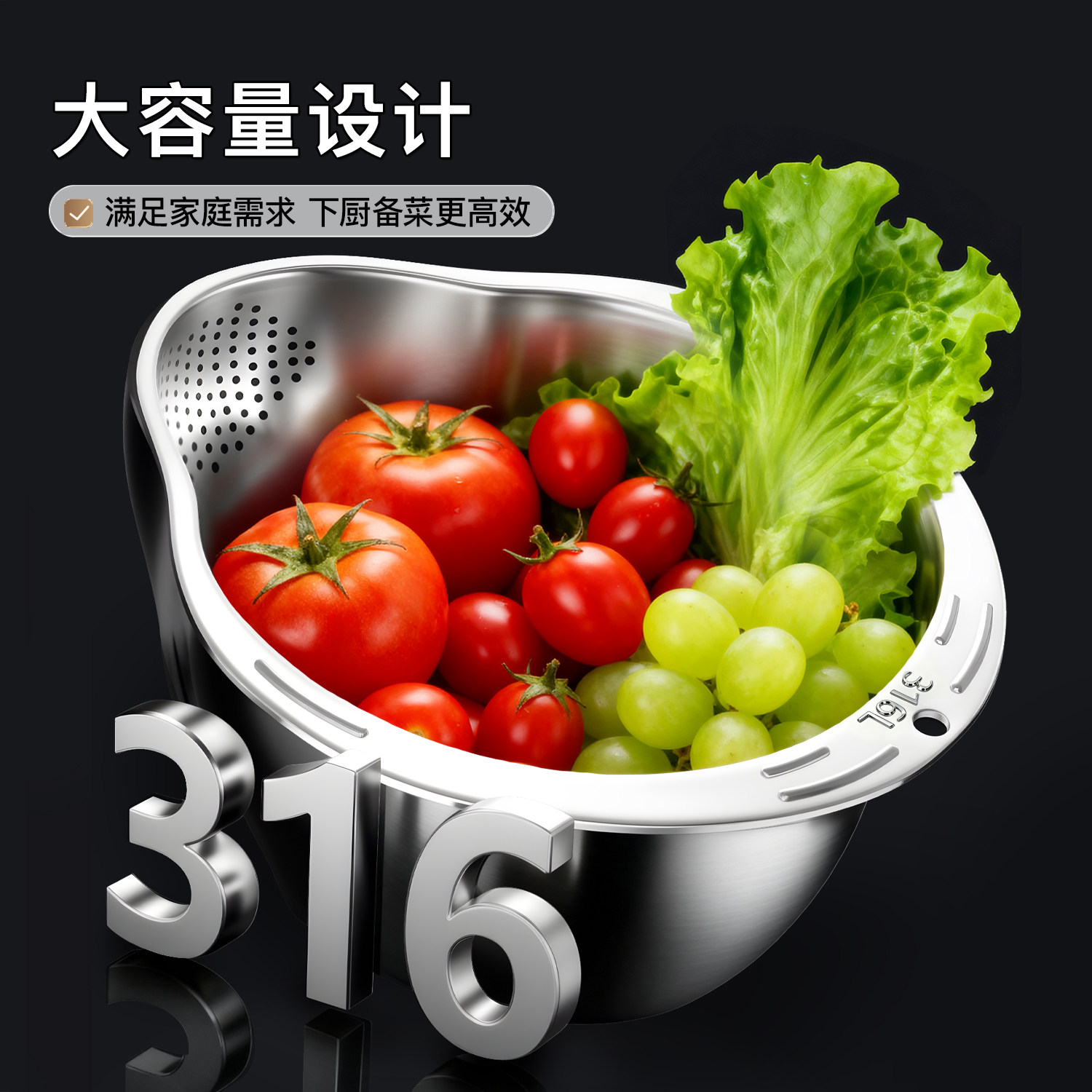佳帮手新款不锈钢沥水篮洗菜盆厨房多功能盆水果沥水盆淘米神器