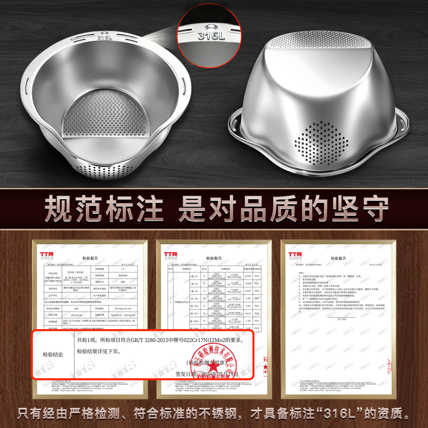 推荐理由:316不锈钢 盆沿加宽 加厚加深
